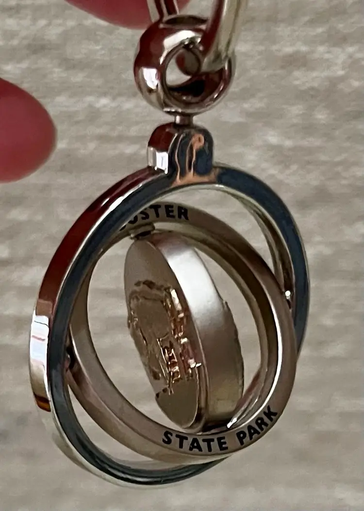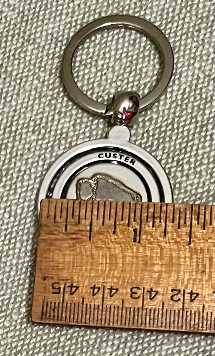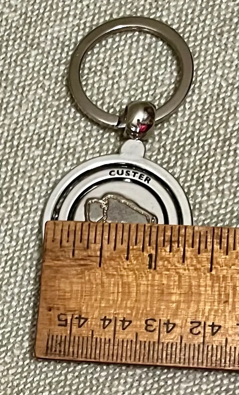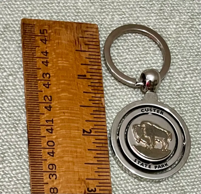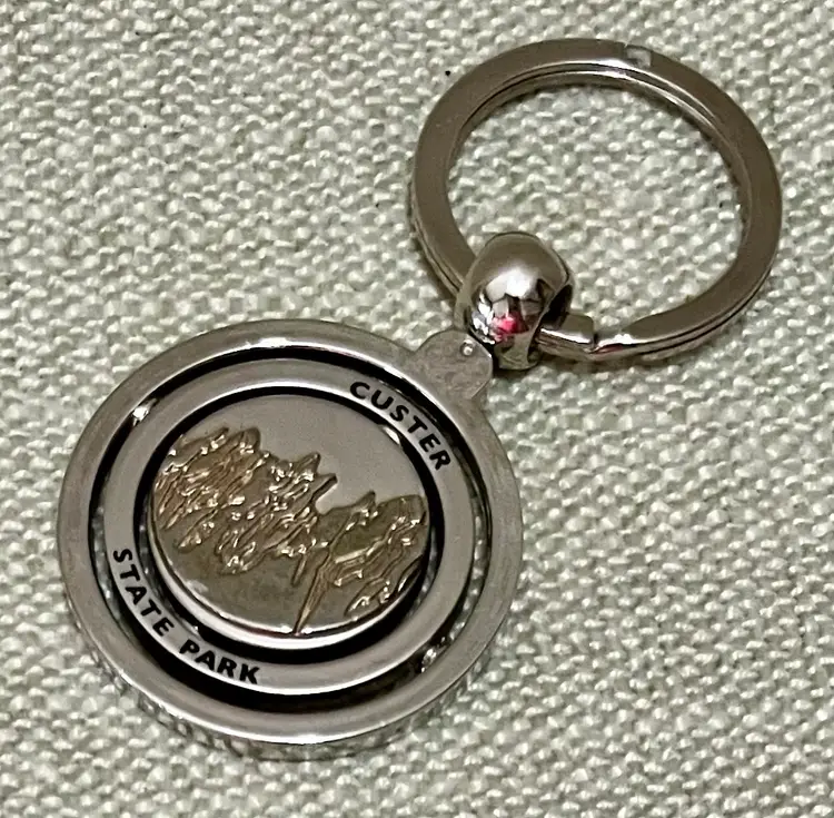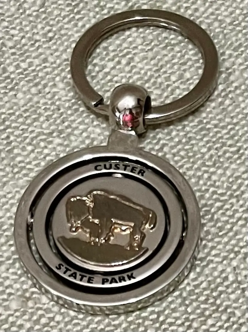 Souvenir Keychain Rotating Center Disc Mountain Buffalo Tourist - Vacation / Memory - Custer State Park is South Dakota's first and largest state park, a 71,000-acre wildlife reserve in the Black Hills known for its free-roaming bison herd and scenic drives like the Wildlife Loop Road and Needles Highway.