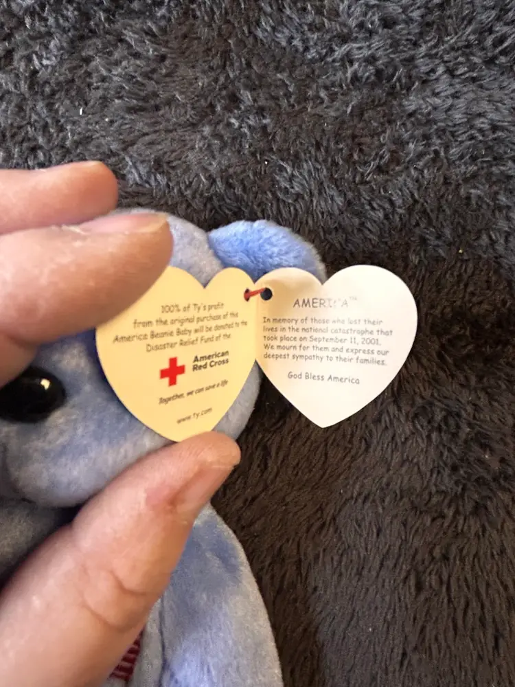 The TY Beanie Baby America Bear 9/11 Memorial Red Cross Edition is a rare and retired collectible plush toy from the year 2001. This Beanie Baby is a special edition release in commemoration of the 9/11 attacks and in support of the American Red Cross. With its unique design and historical significance, this Beanie Baby is a sought-after item for collectors and fans of nostalgic toys